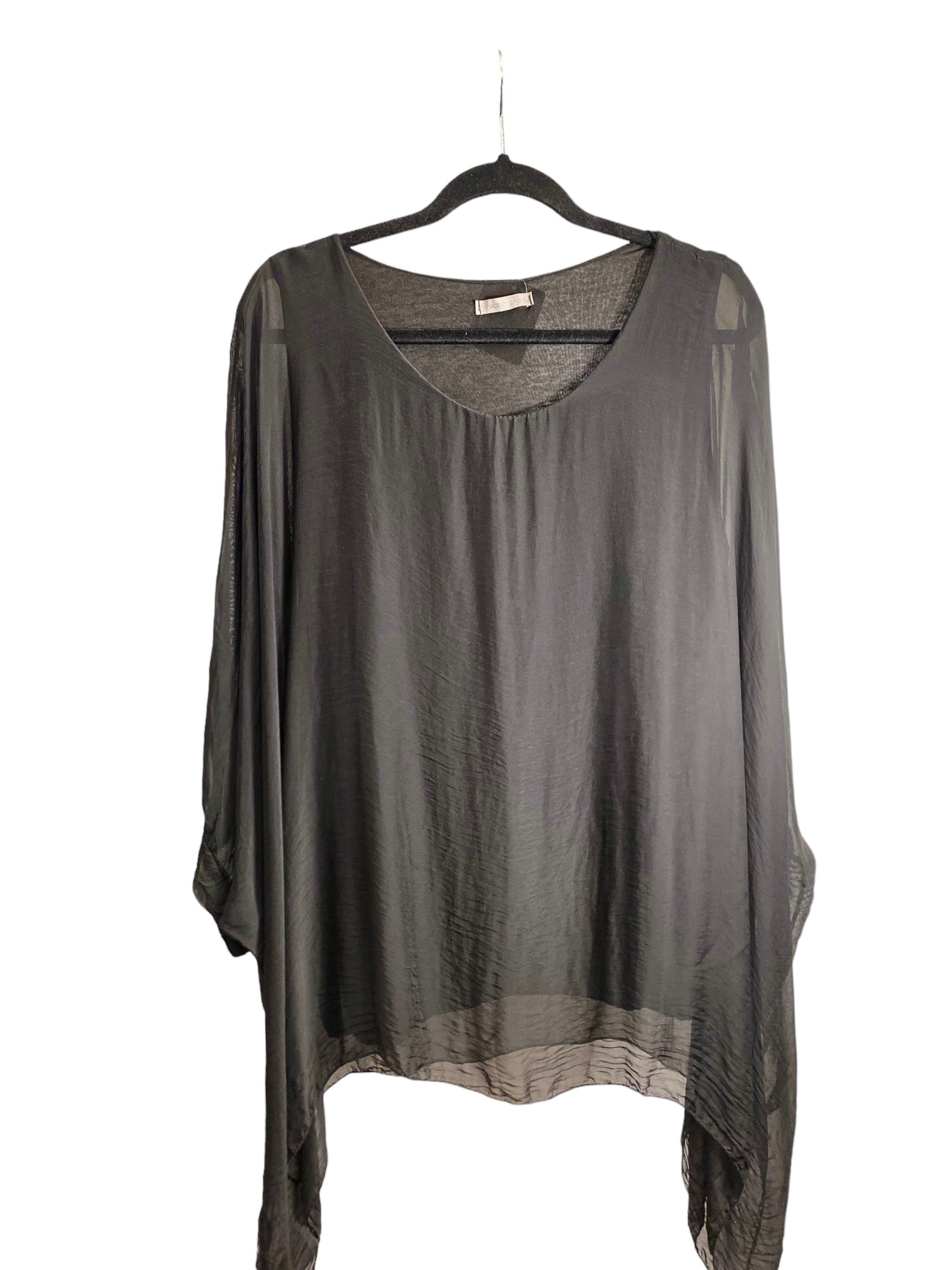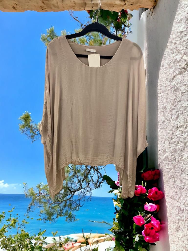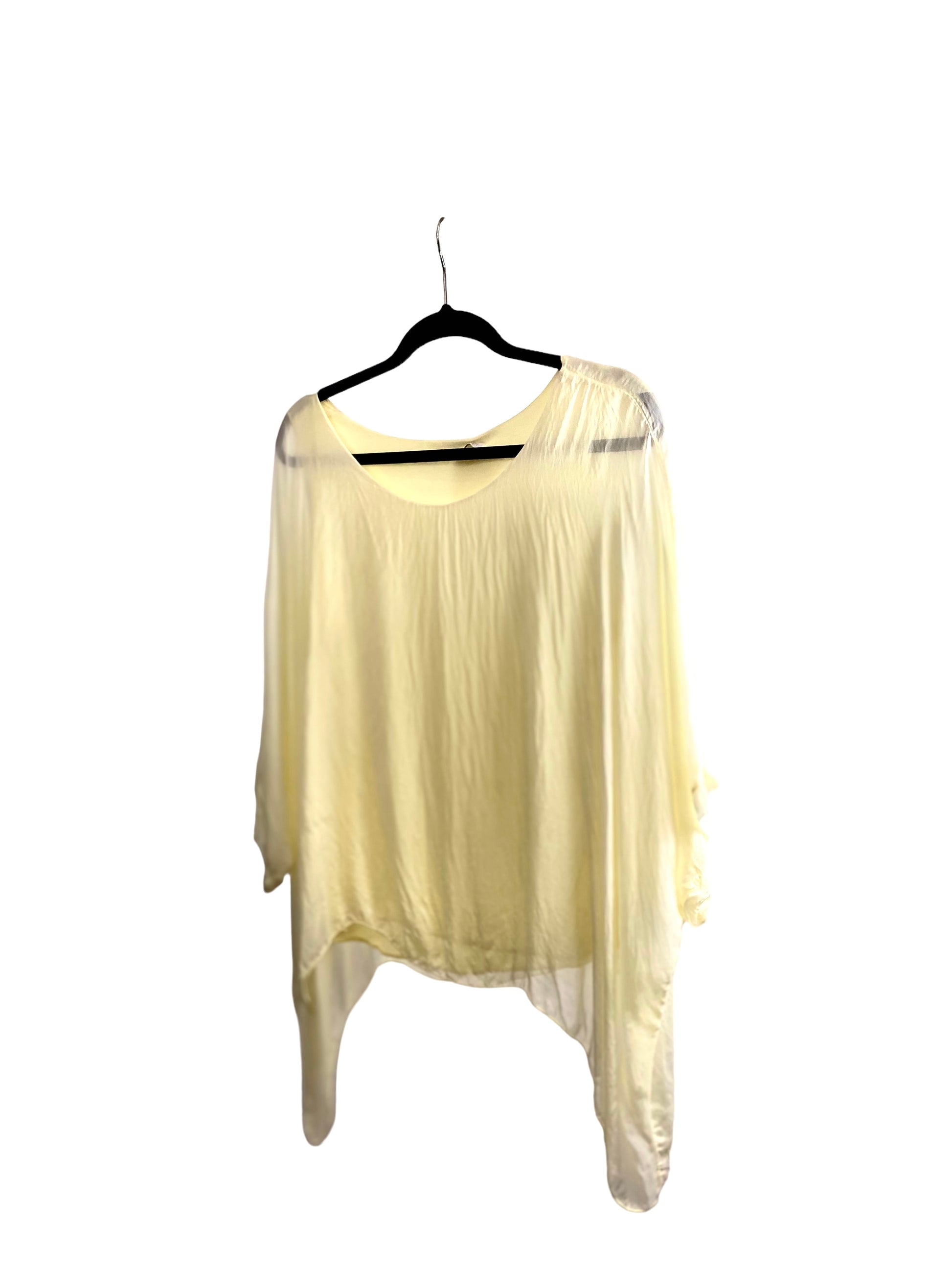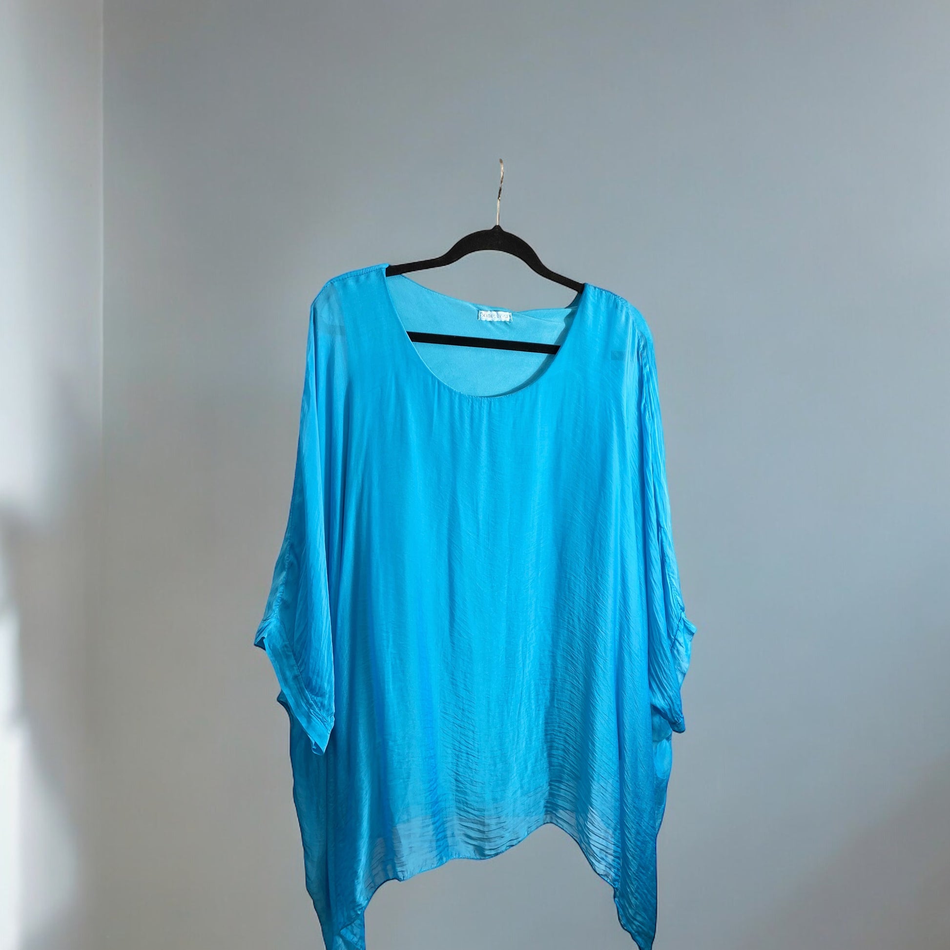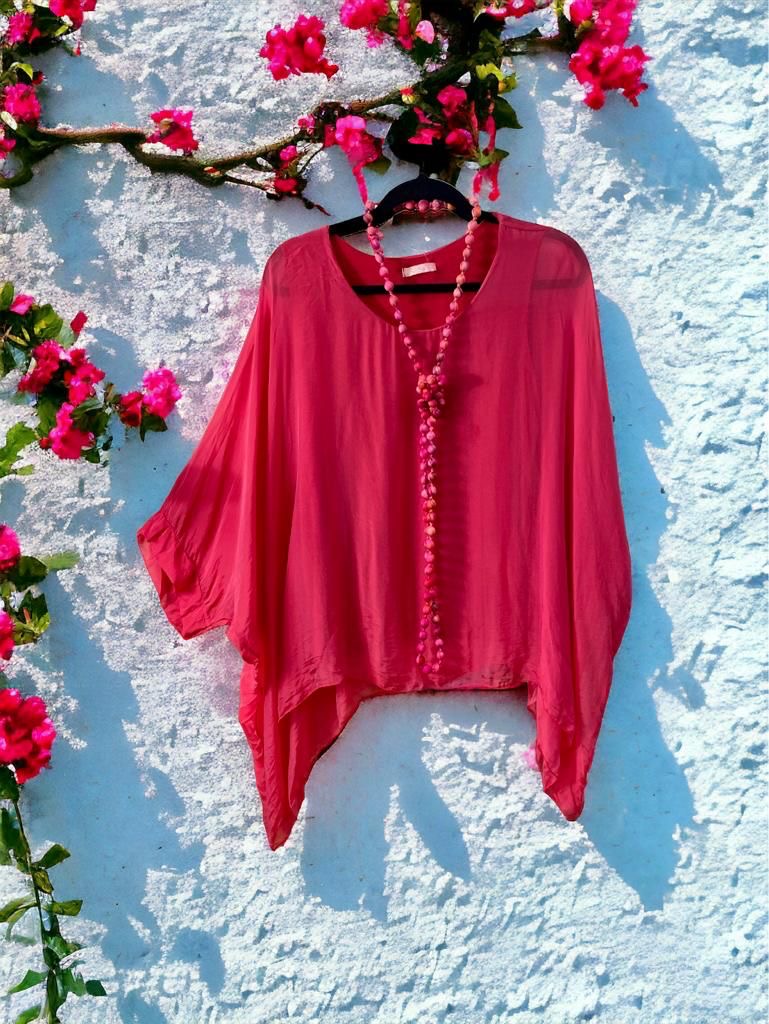 Este blusón de seda, con forro de viscosa, es una prenda versátil y cómoda que podrás usar en cualquier ocasión. Su diseño modelo mariposa le da un toque especial y elegante. Disfruta del lujo y suavidad de la seda.