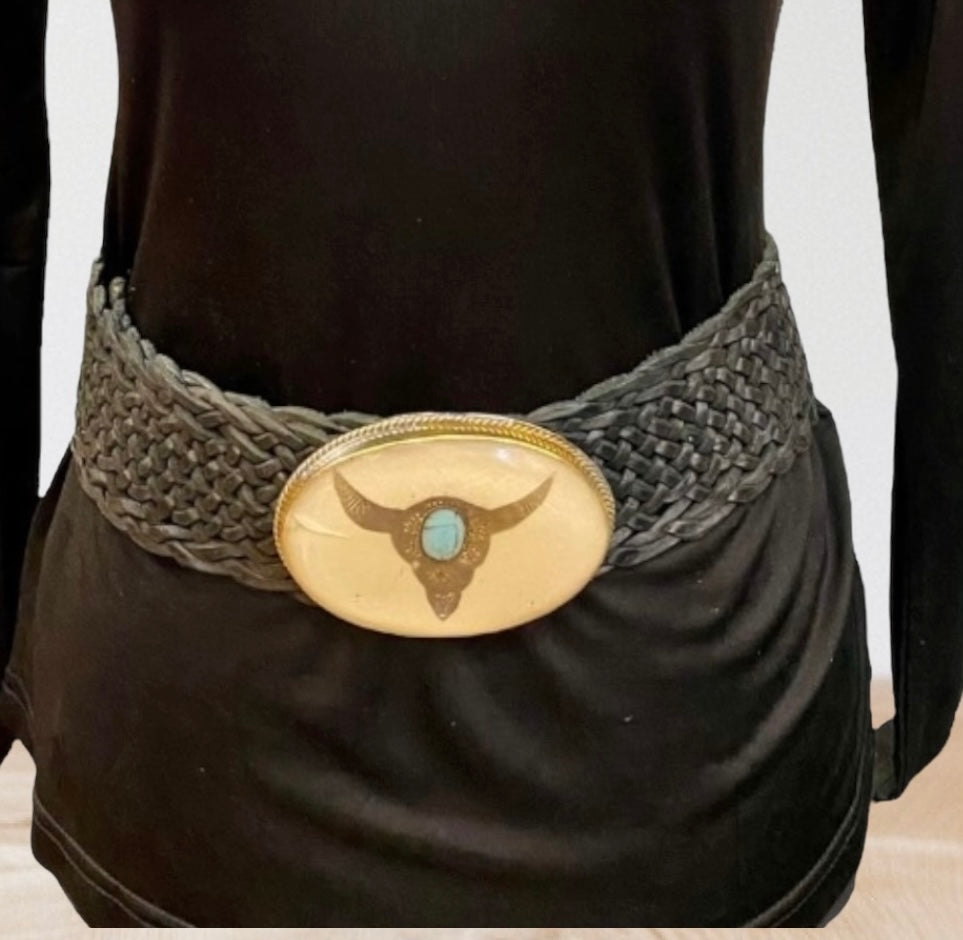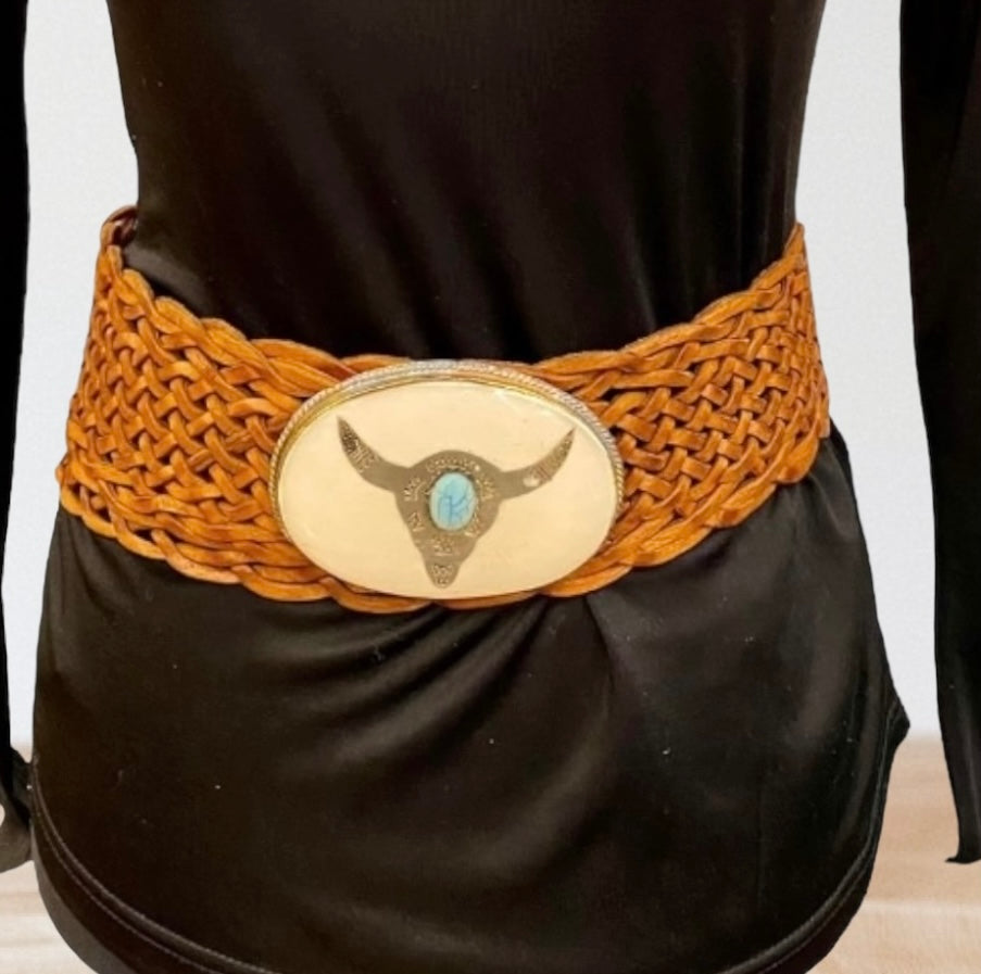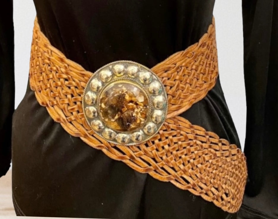 Cinturón de cuero trenzado ancho